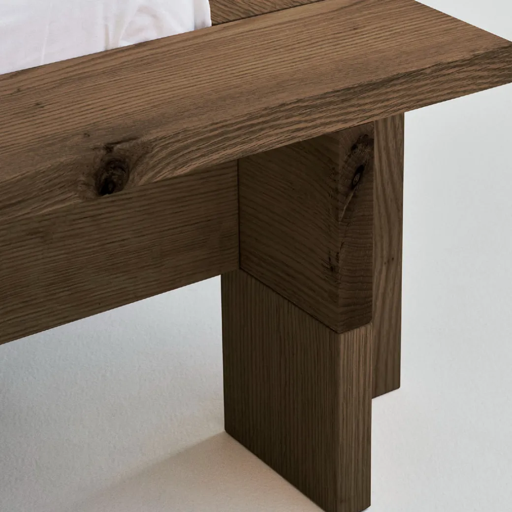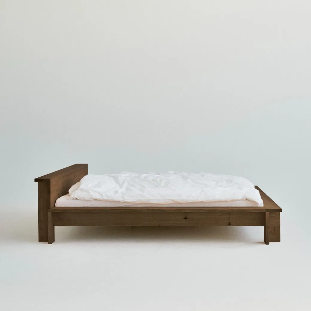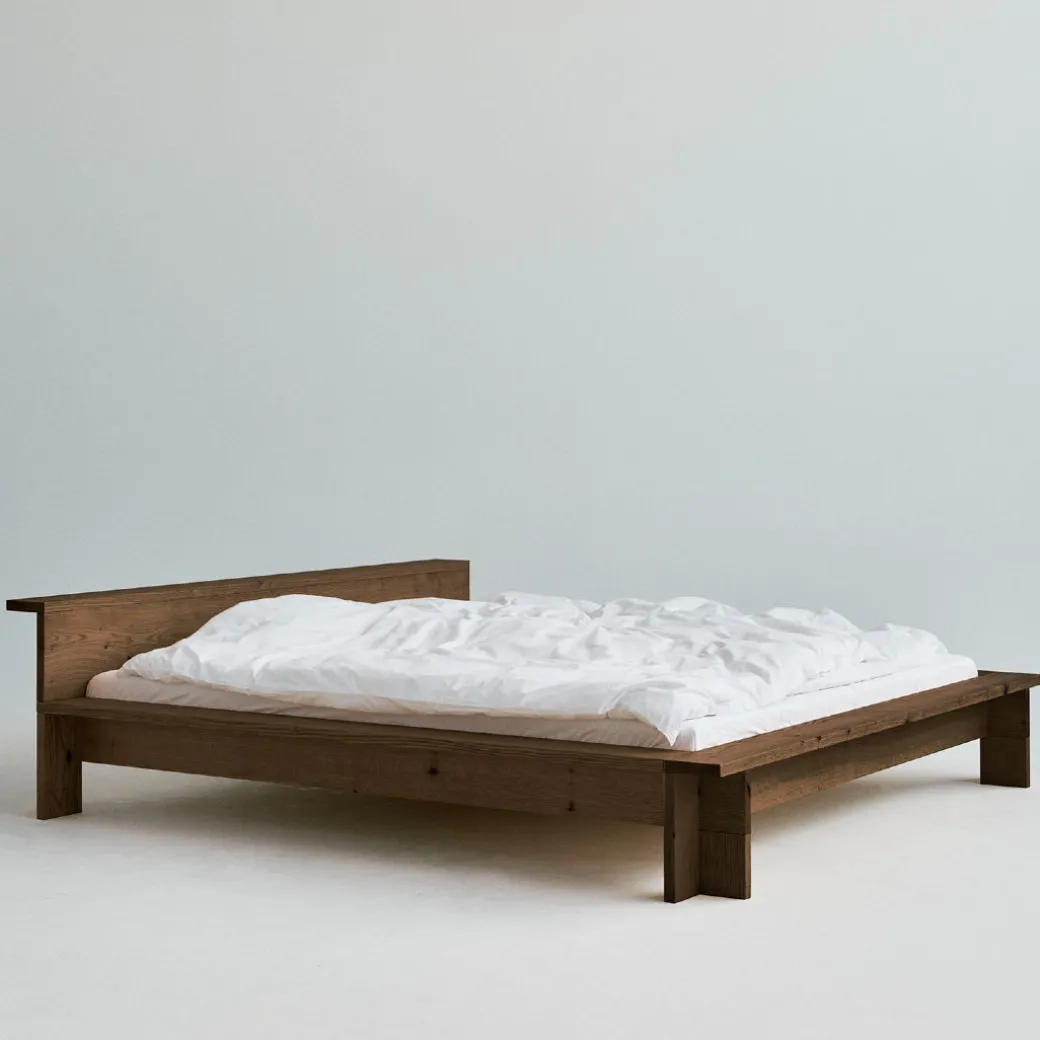 The Hem Bed Frame is a sculptural centerpiece for the bedroom, masterfully crafted from solid red oak.