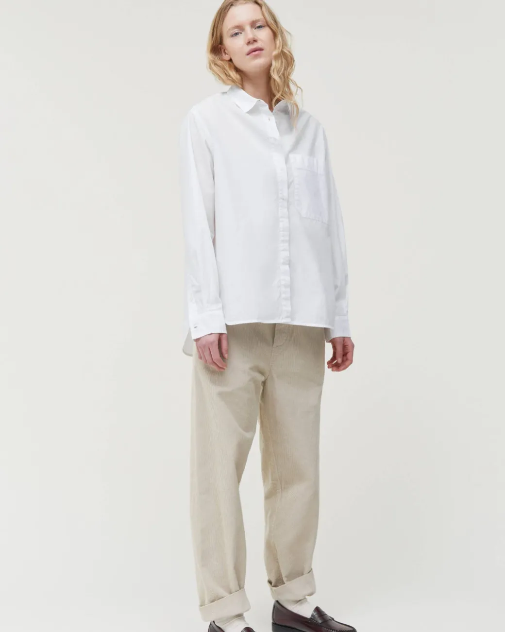 Klassisk button-down skjorte med elegant volumen. Lynette shirt er designet med fin brystlomme, klassisk krave, ekstra længde bagtil samt brede manchetter, der giver ærmerne en elegant form. En tidløs klassiker af 100% økologisk bomuld, der holder på tværs af sæsoner.