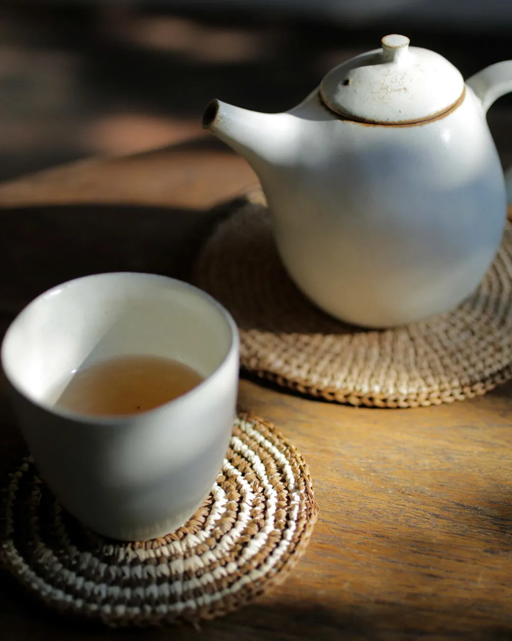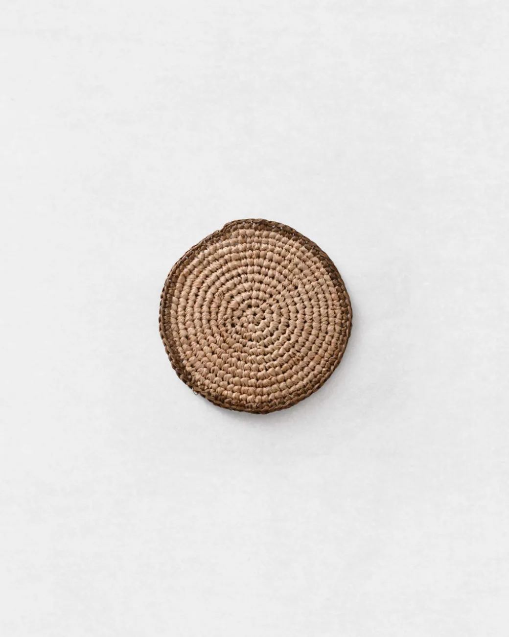 Hand-plaited, vegetable-dyed raffia coaster. Made in Madagascar.