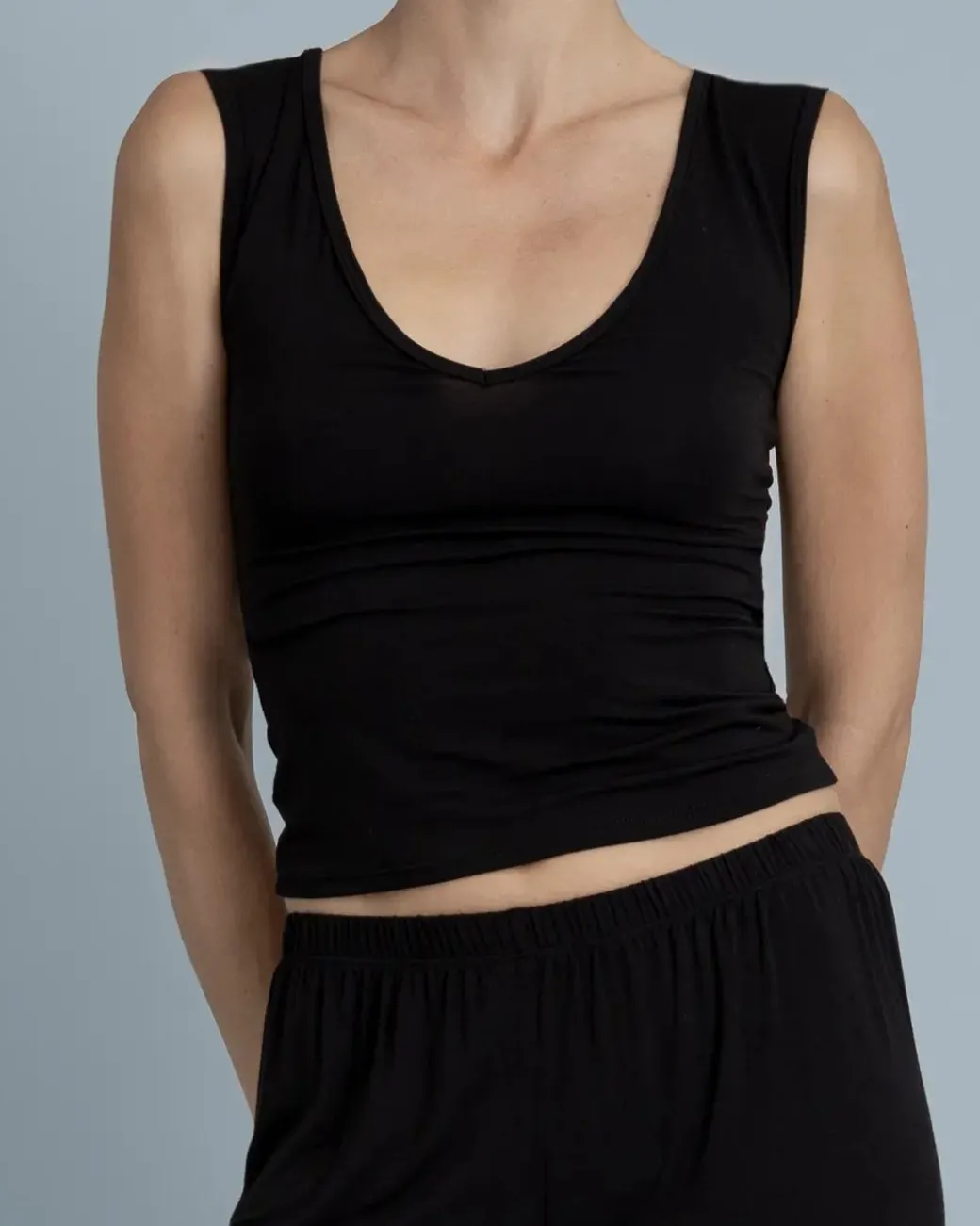 A timeless sleeveless with a fitted silhouette and the perfect hip length. Made from a luxuriously soft, environmentally-conscious bamboo. Named for Mies Van Der Rohe’s Reclining Chair series as an ode to moments of calm in your everyday.