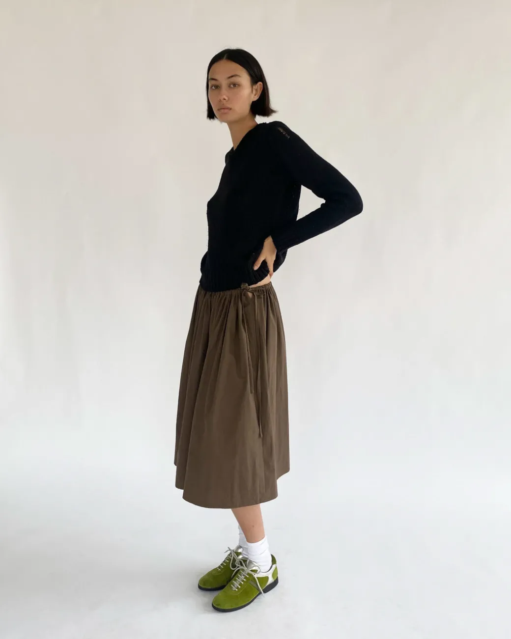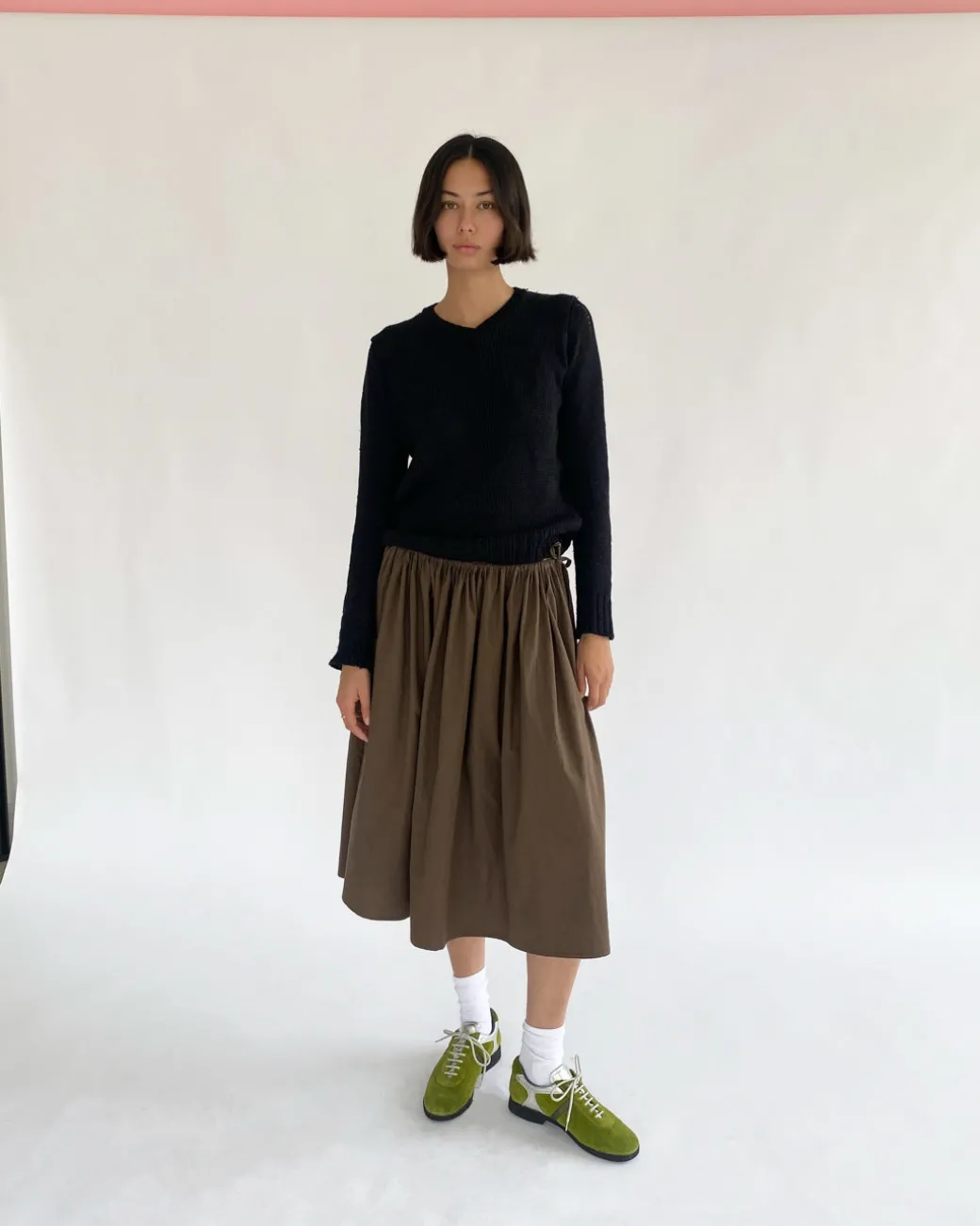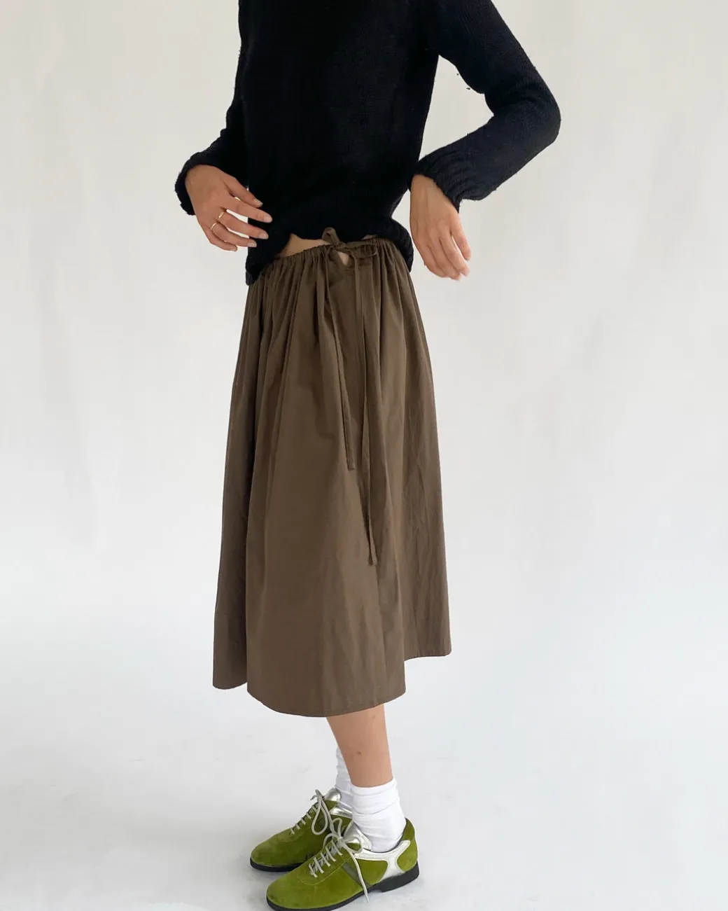 100% Cotton poplin skirt with a fully adjustable tie waist. Designed, cut, and sewn in Echo Park, Los Angeles.